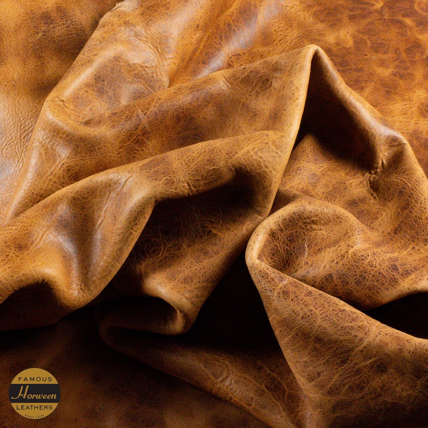 Horween Derby Leather is full-grain, pure vegetable-tanned leather. Tanners infuse it with a rich blend of oils, hand-glaze it with an aniline finish, and tumble it to bring out a natural look with heavy pull-up. This process gives the leather a softer, more supple feel.