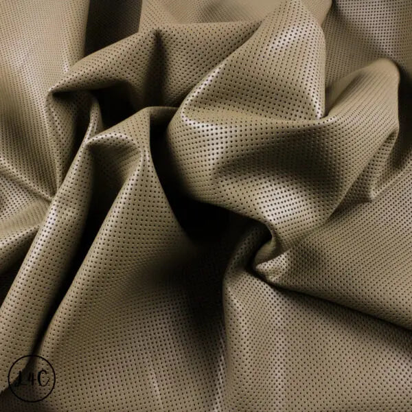 This unusual leather features a pin-punch texture and isn’t perforated all the way through. We finish it in a rich brown color, and its consistency throughout makes it supple, perfect for a range of small leather crafts.
