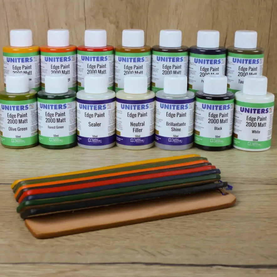 Uniters Edge Paint 2000 Matt is a high-quality, water-based paint designed to give leather edges a smooth, matte finish. It works beautifully on all types of leather, delivering a clean, professional result every time.