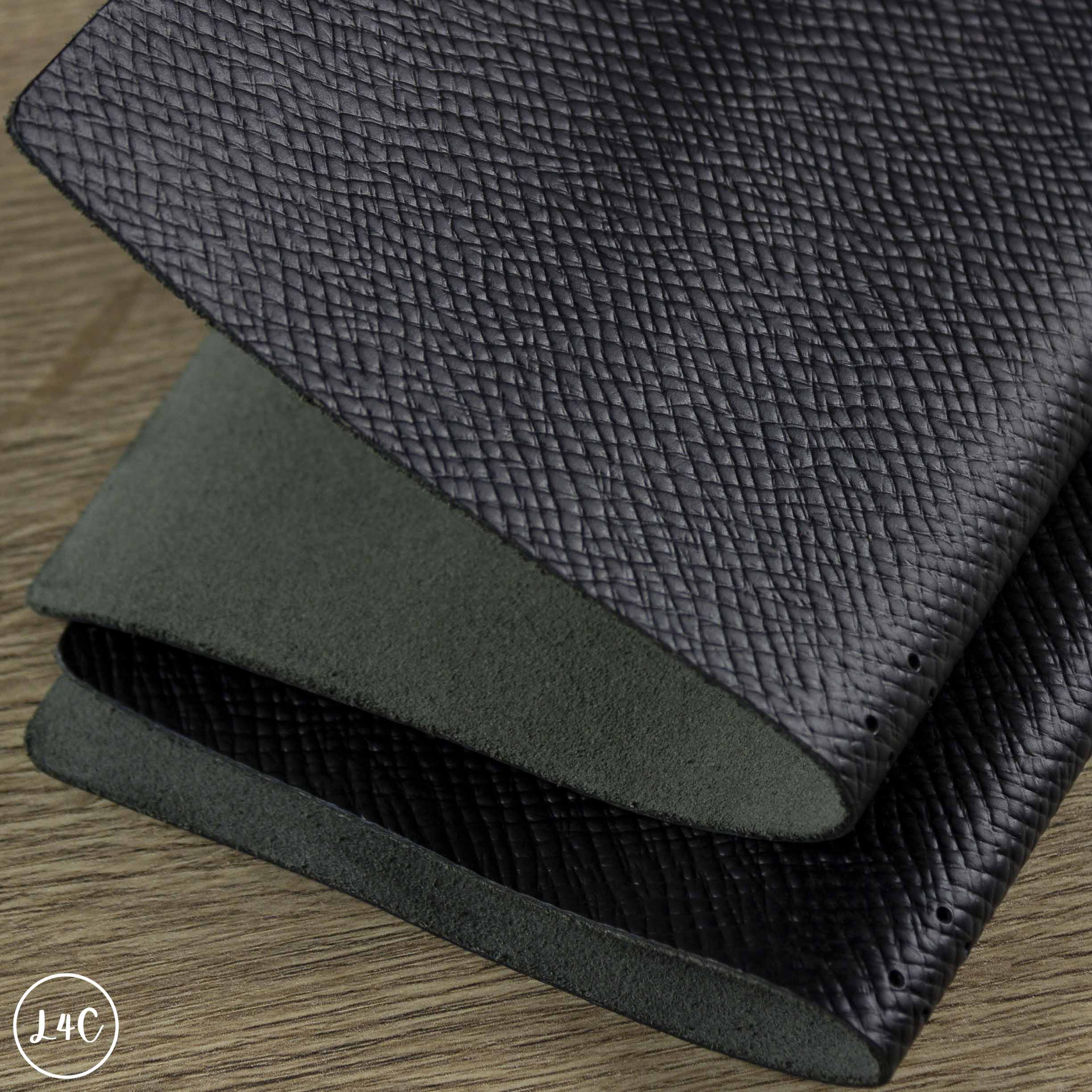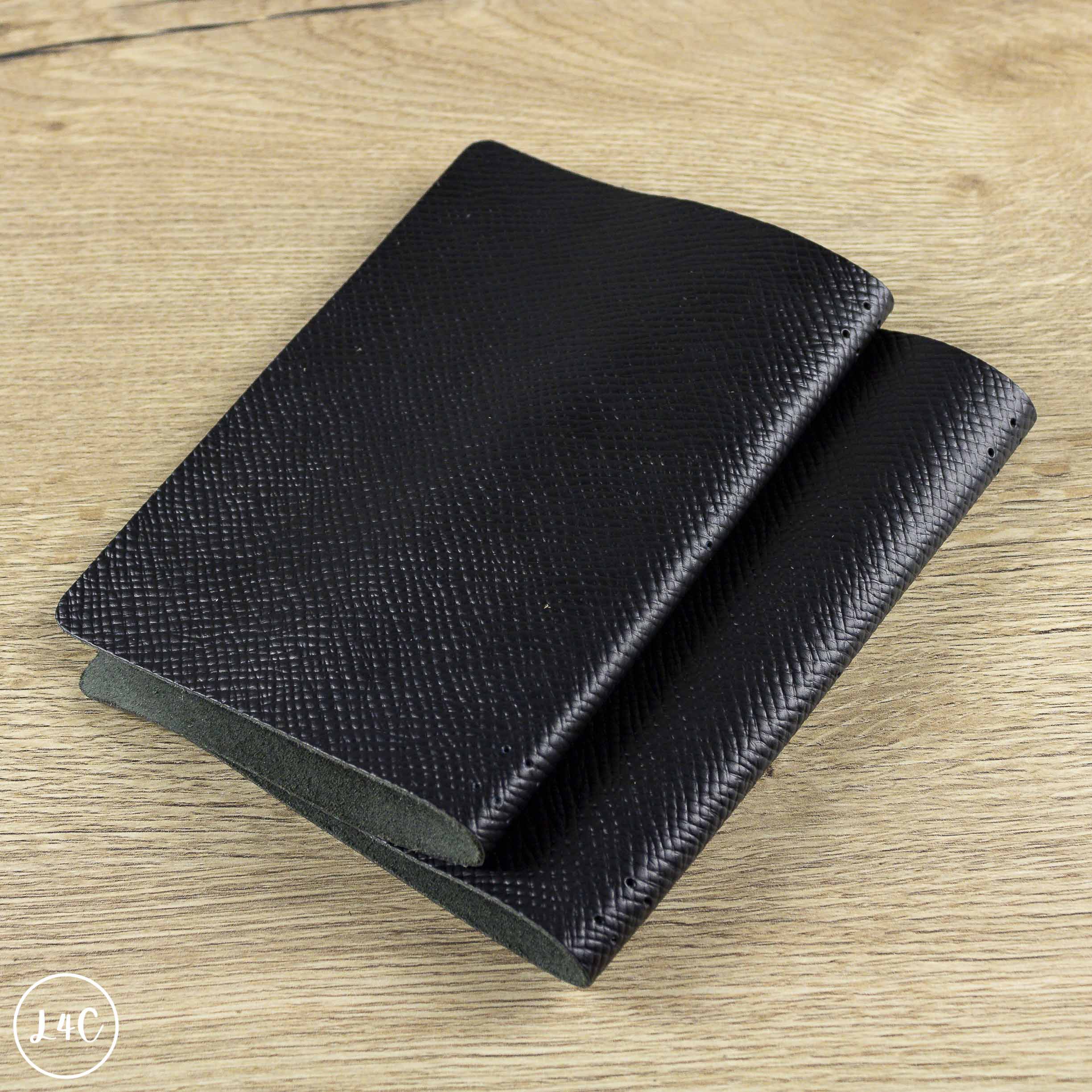 Black Leather Notebooks, Pebble Dollaro Grain features A5 or A6 sized notebook panels.
