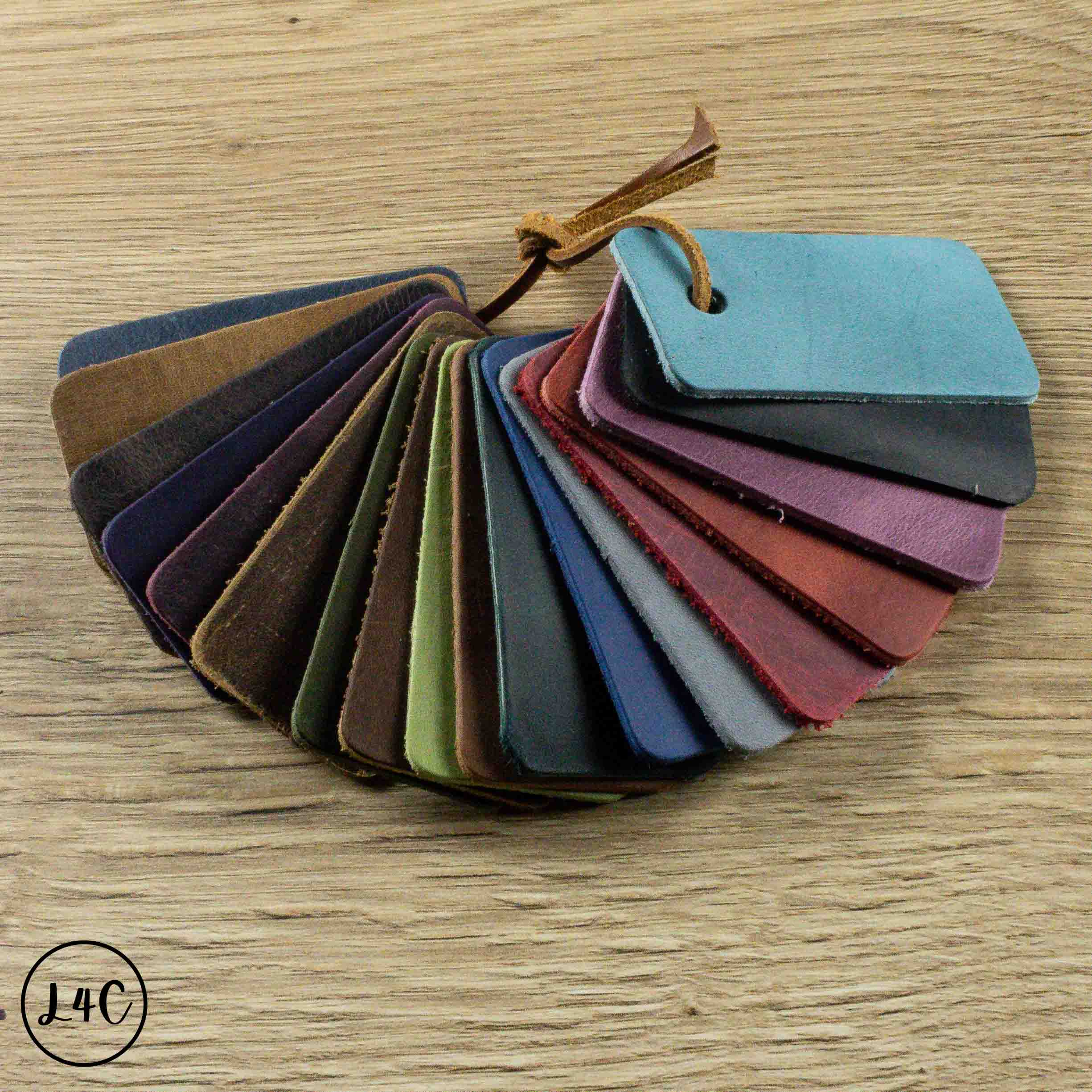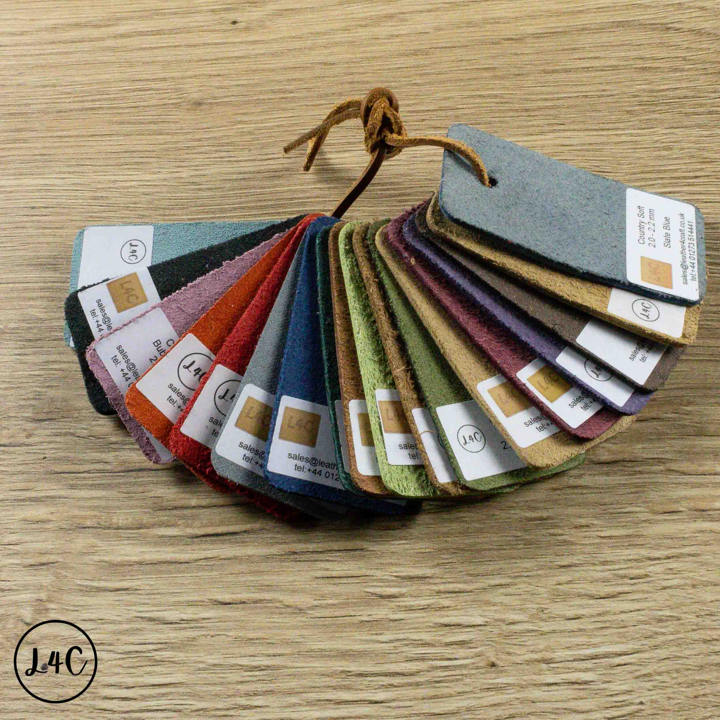 Country Soft Samples feature our Country Soft Collection, The same wonderful leather in panels, perfect for leather bags, wallets and purses, journal and notebooks and much more