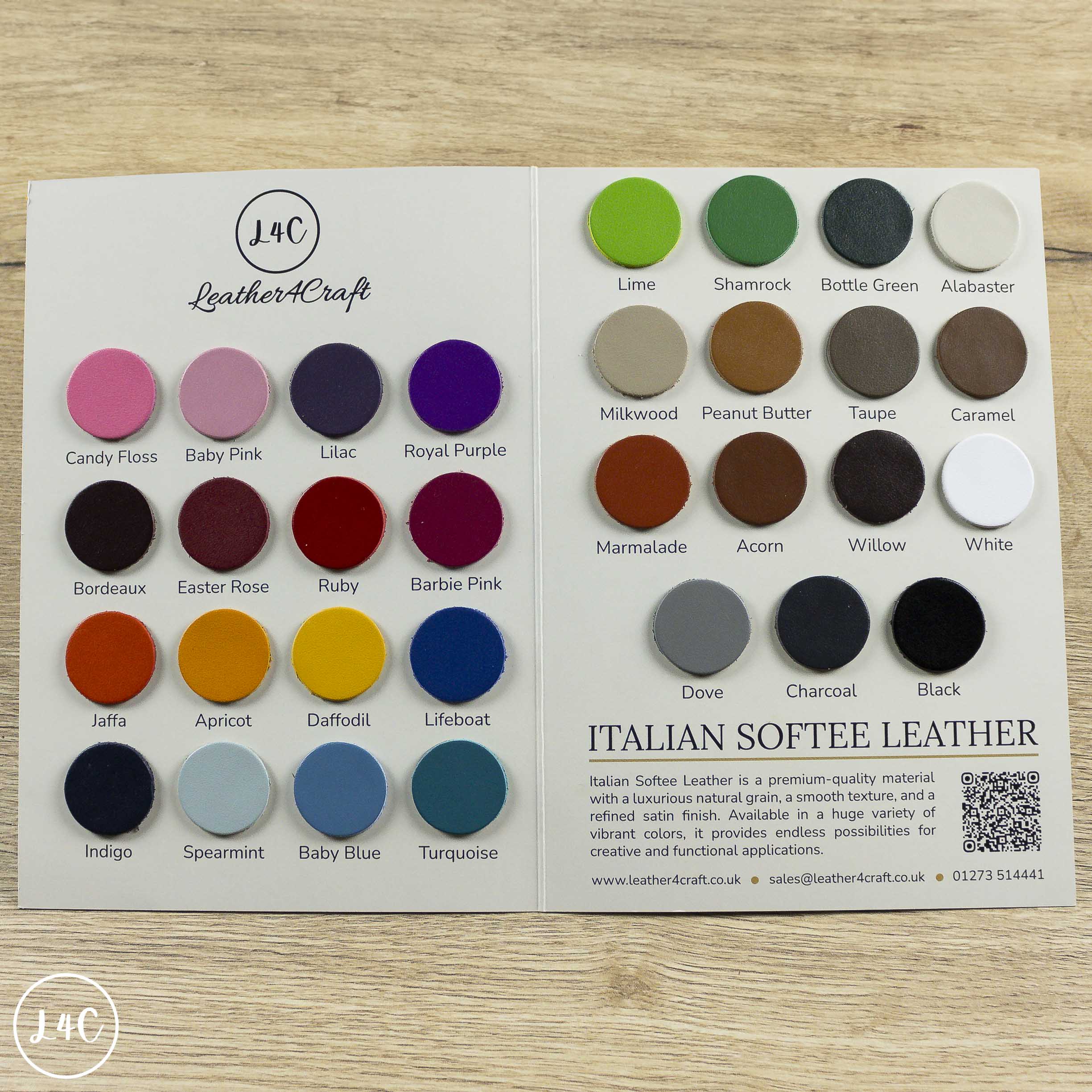 Italian Softee Leather is a premium-quality material with a luxurious natural grain, a smooth texture, and a refined satin finish. Available in over 20 vibrant colors, it provides endless possibilities for creative and functional applications.