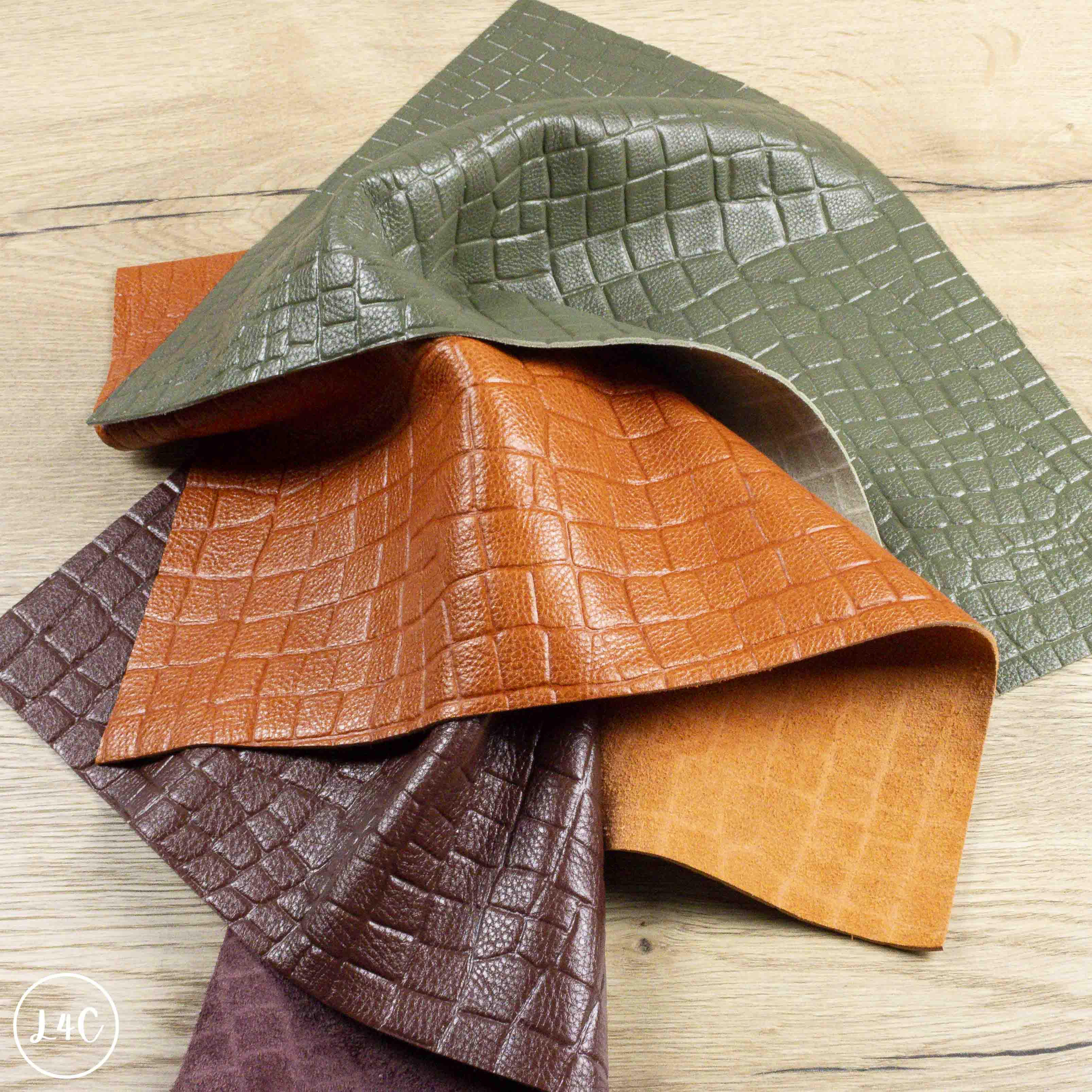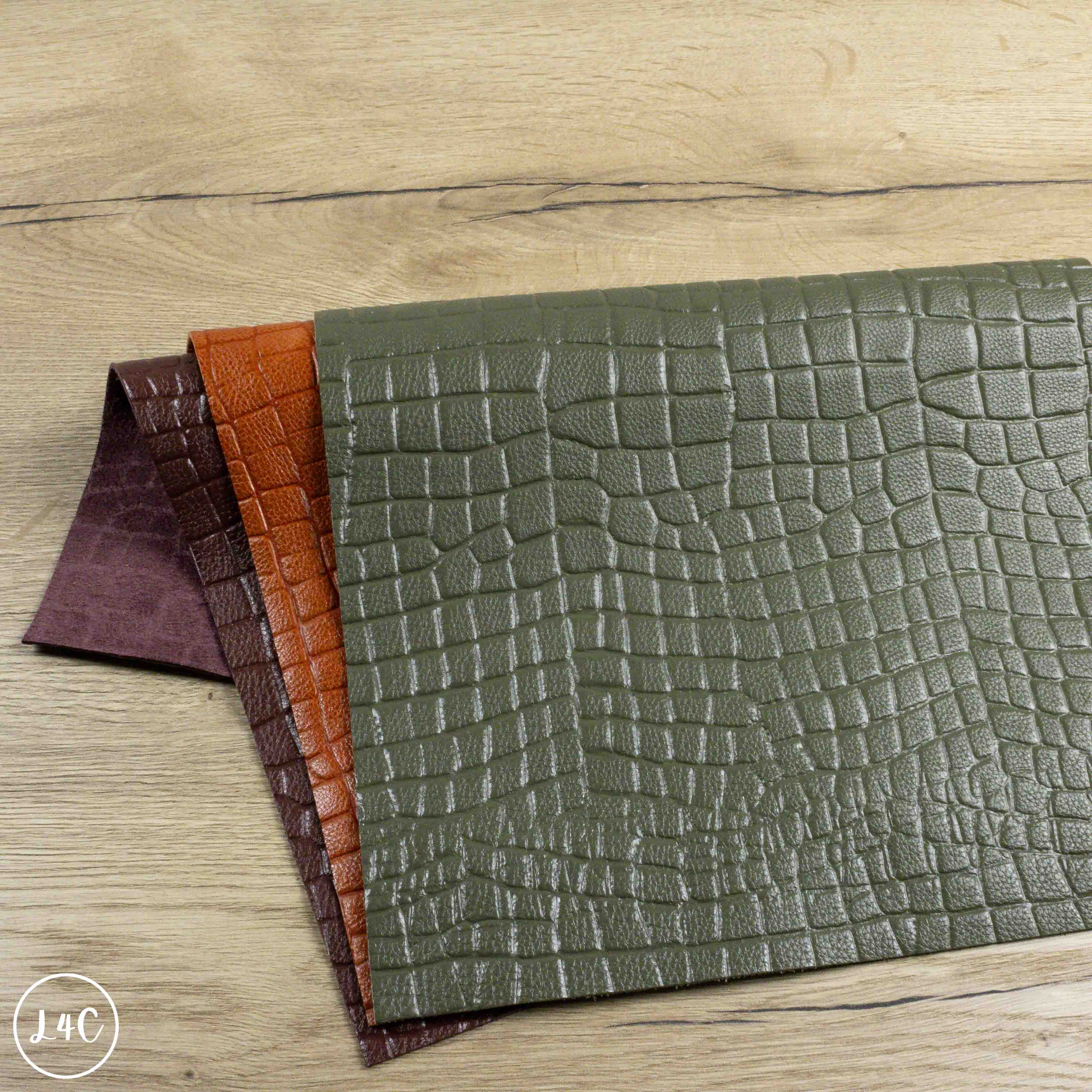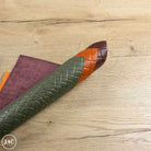 This Tropical Croc Embossed Craft Pack is made from gorgeous croc embossed leather in orange, burgundy & sage green. There are 3, A3 sized panels which are extremely soft and supple meaning this leather is great for a variety of craft projects including wallets, purses, key rings, wristbands.