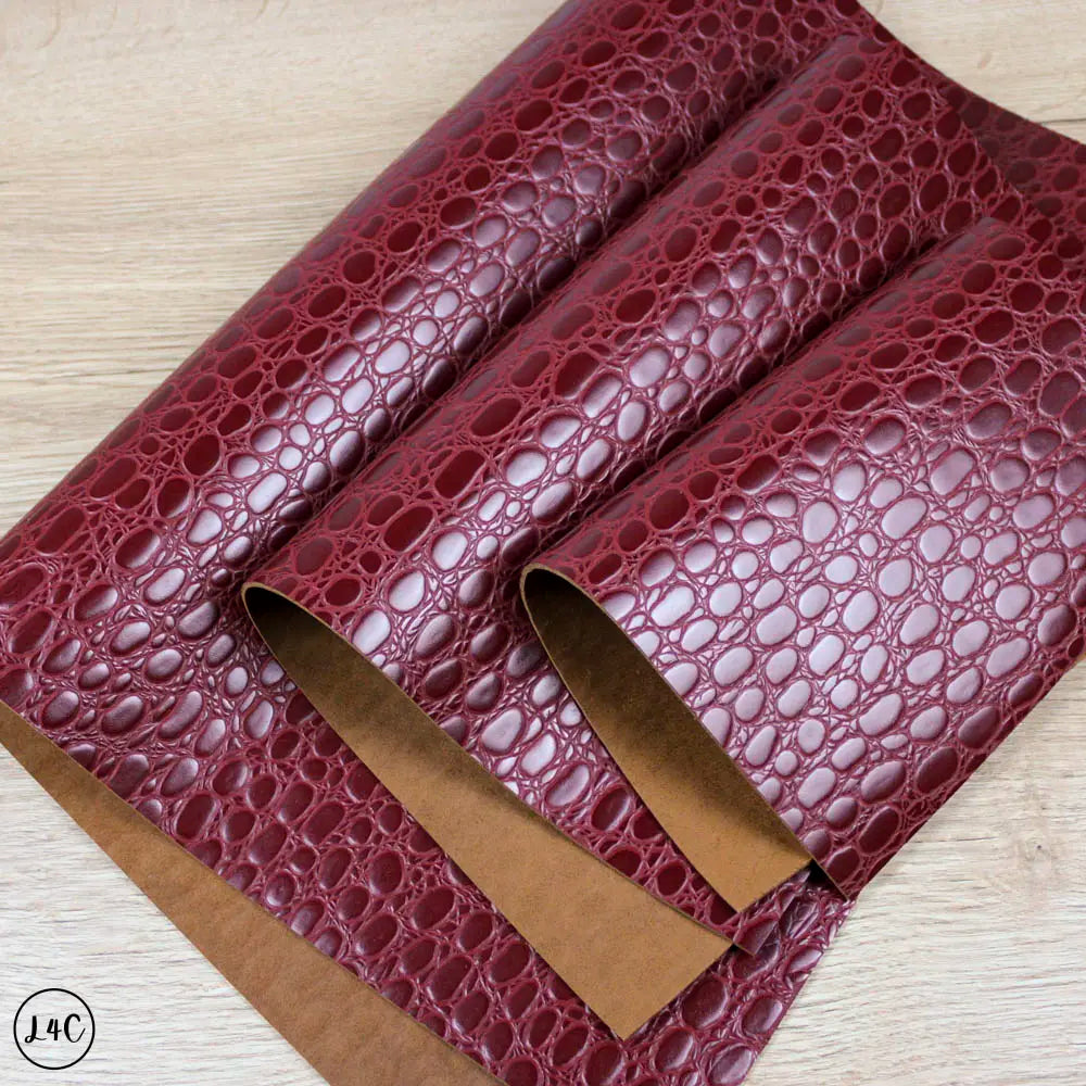 This Round Croc, Winter Berries, Leather has a firm feel and a deep embossed crocodile pattern. Great for bags, satchels and other leather goods.