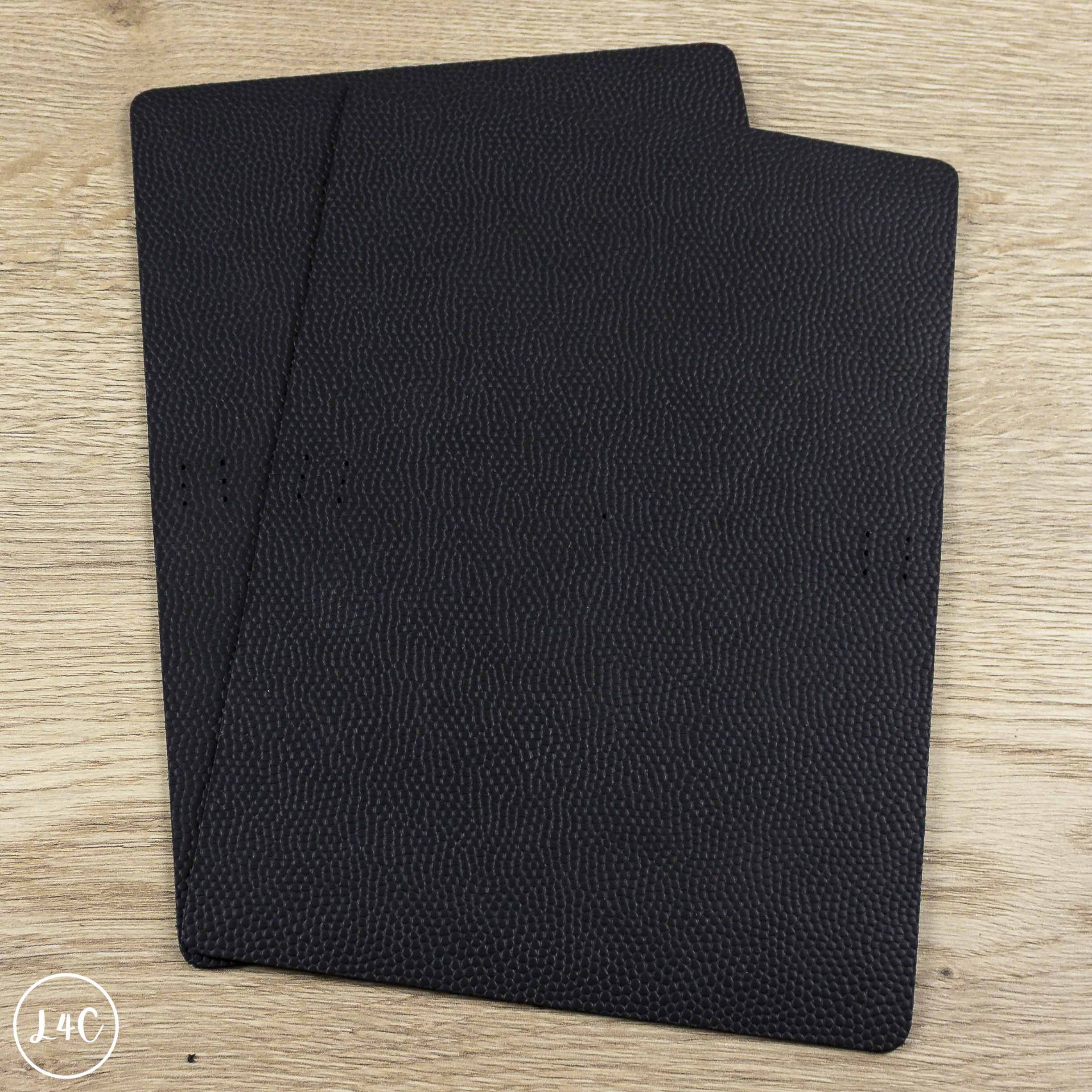 Black Leather Notebooks, Pebble Dollaro Grain features A5 or A6 sized notebook panels.