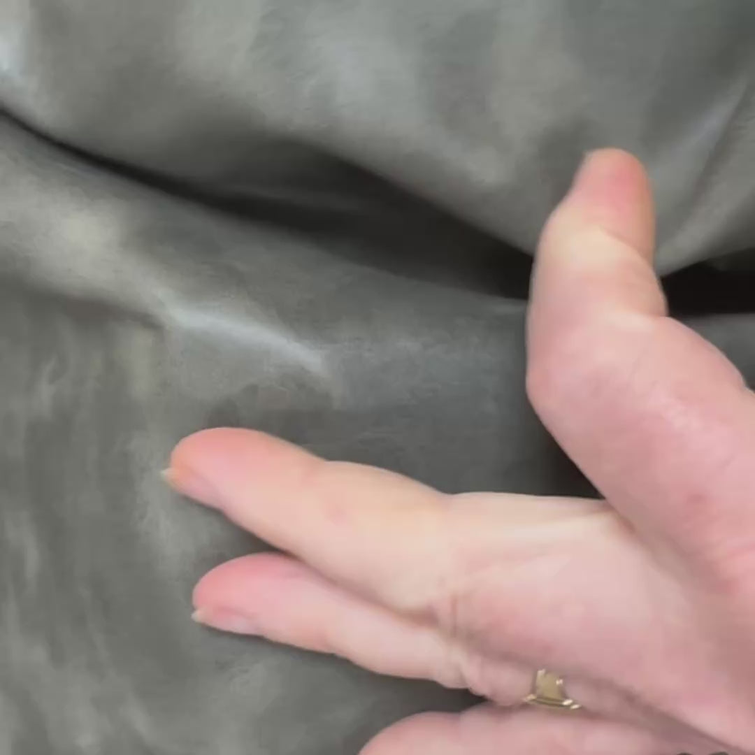 This is a beautiful new veg re-tan leather from Horween . It has a semi firm feel with a full grain, heavy pull up , in a unique grey with an olive green hue.