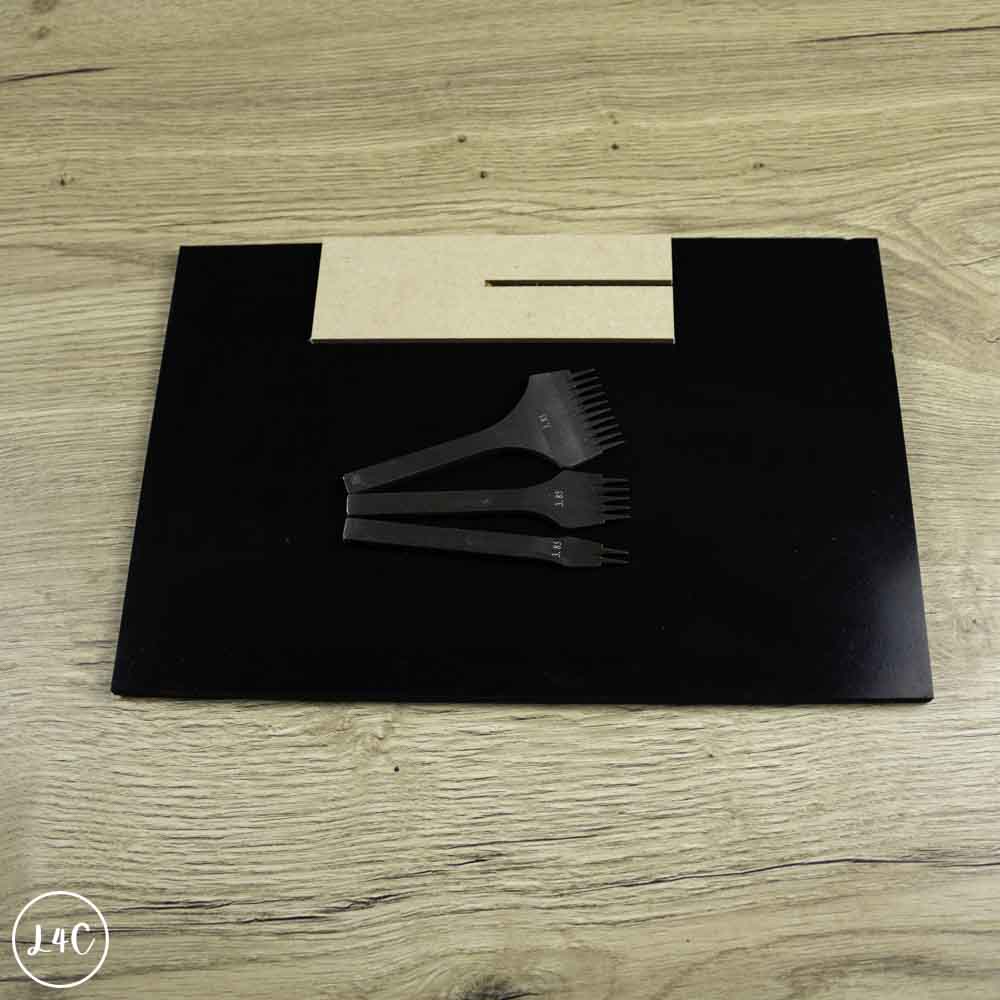 This set includes a set of 3.85 mm chisels and an MDF slot to help remove chisels.