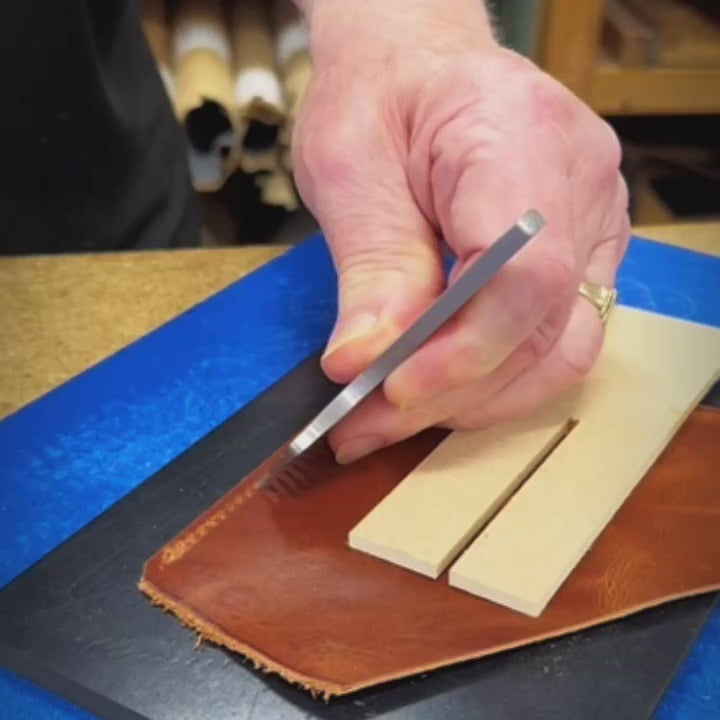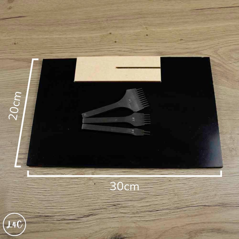 Use this Poundo Board with blades when cutting leather, and place it under a mat for sound and shock absorption when punching or stamping. Its soft rubber protects your tools from damage.