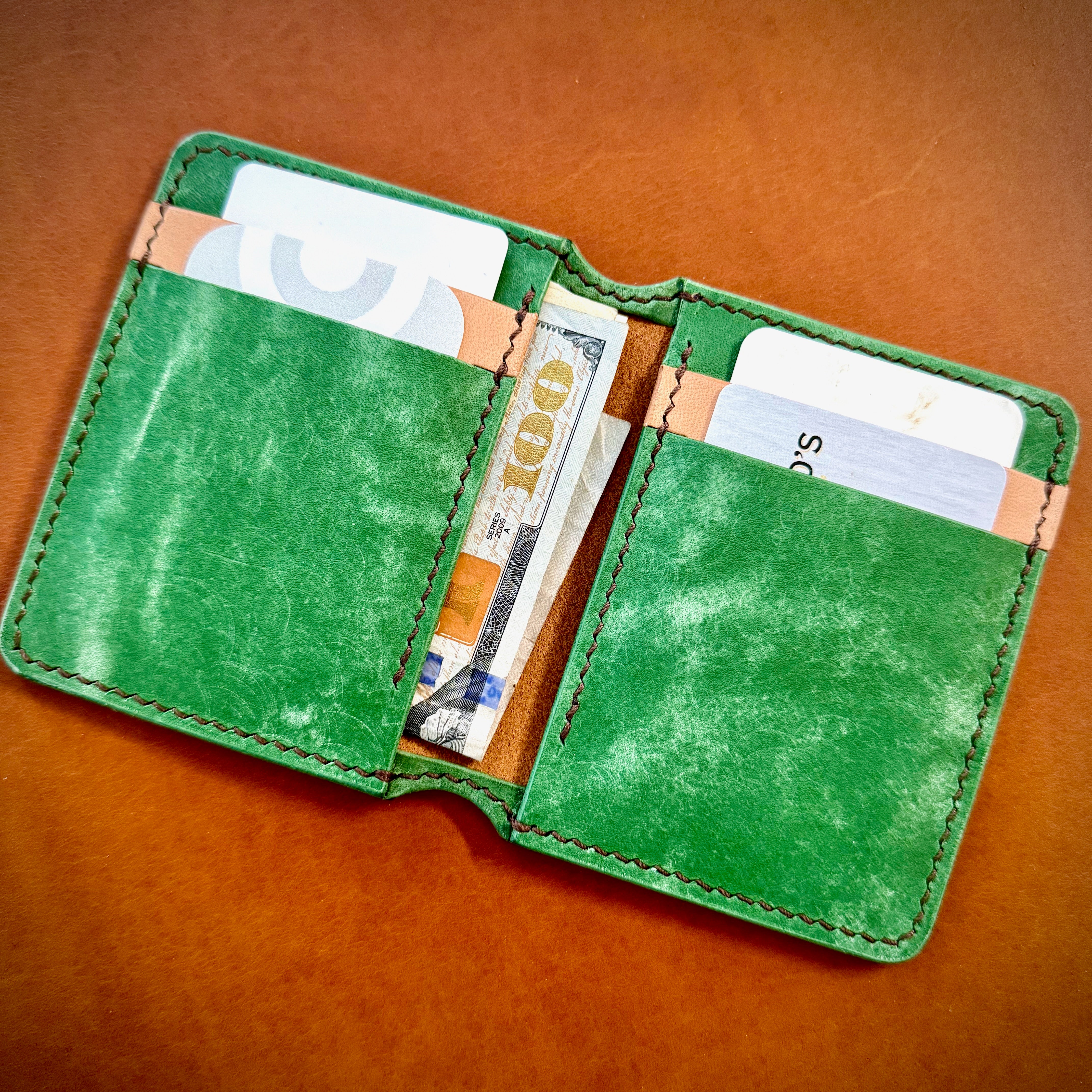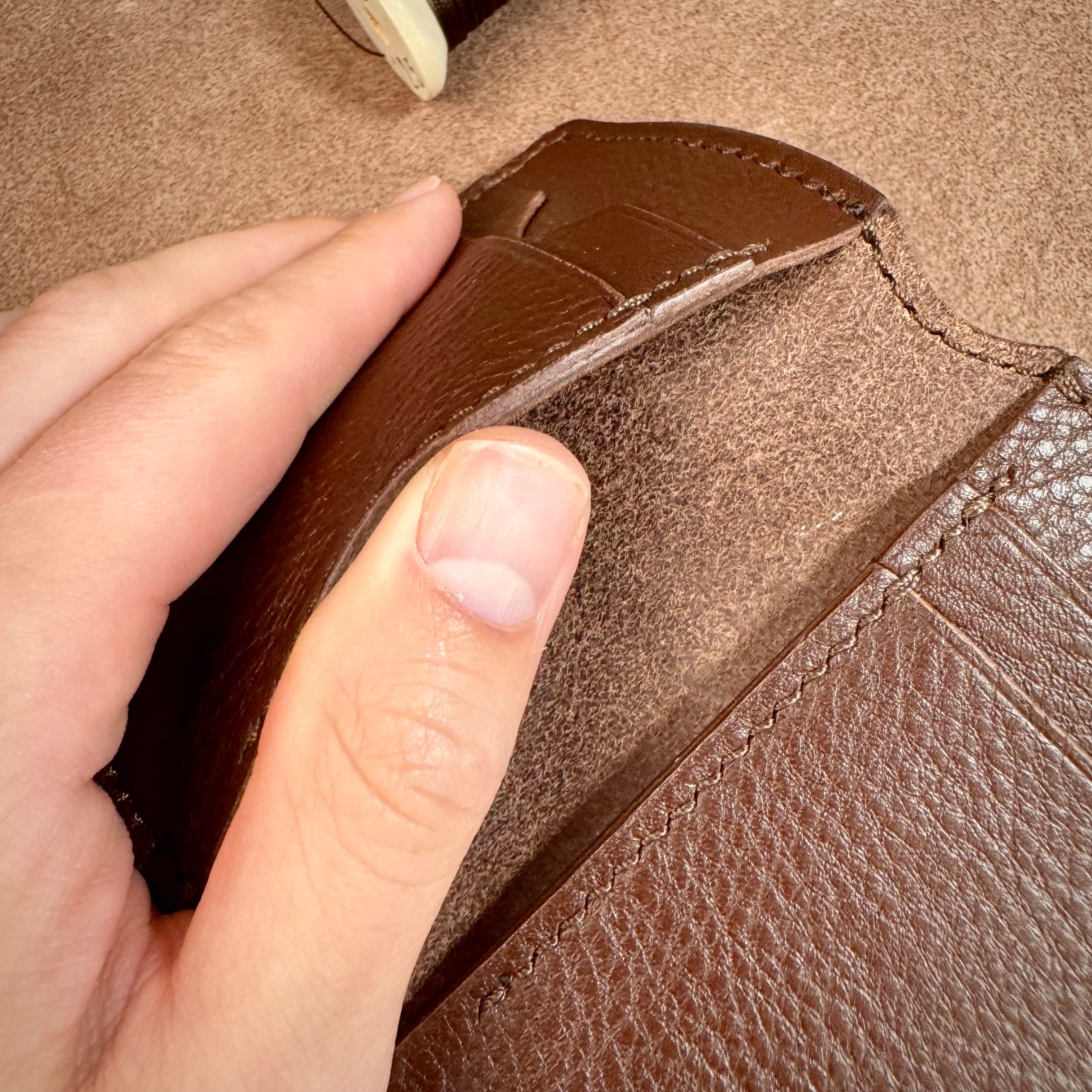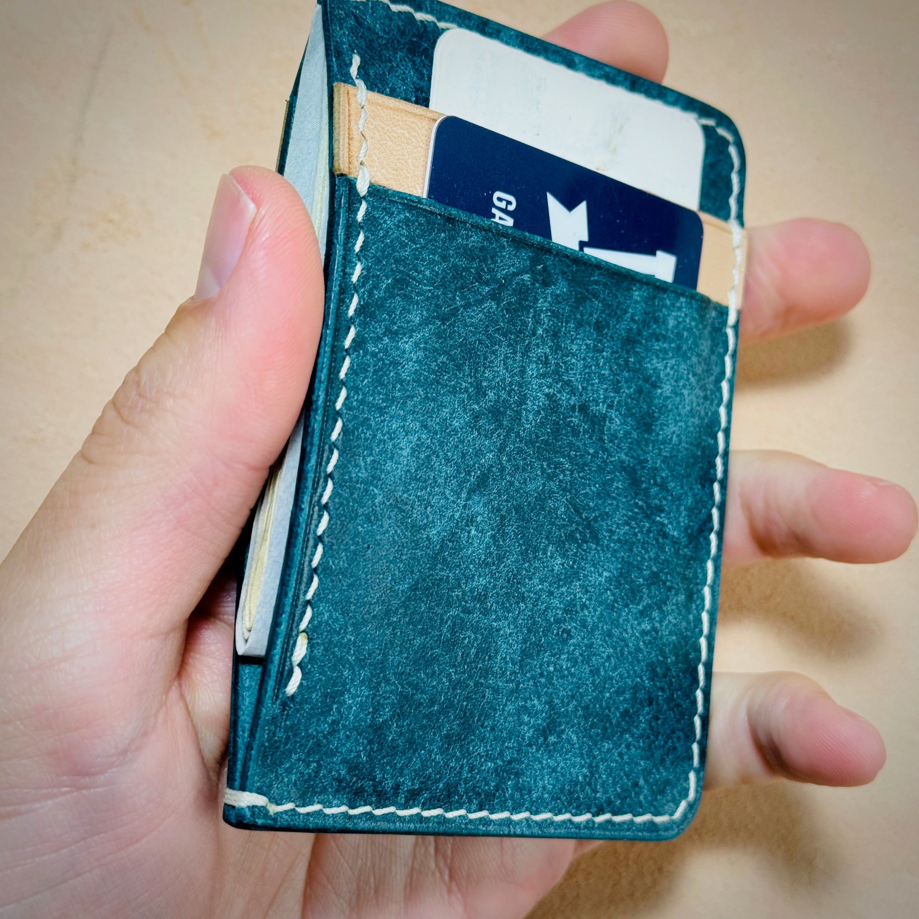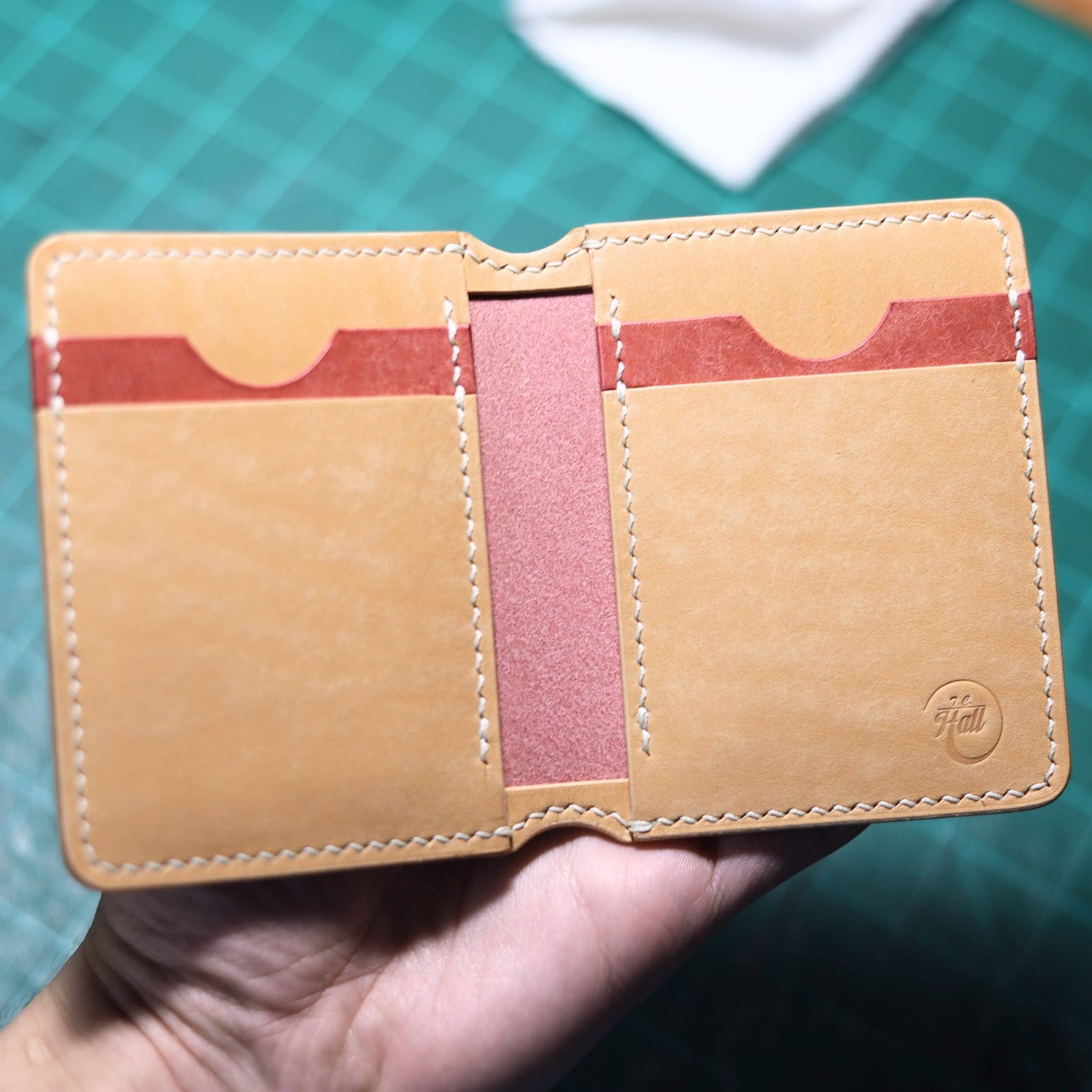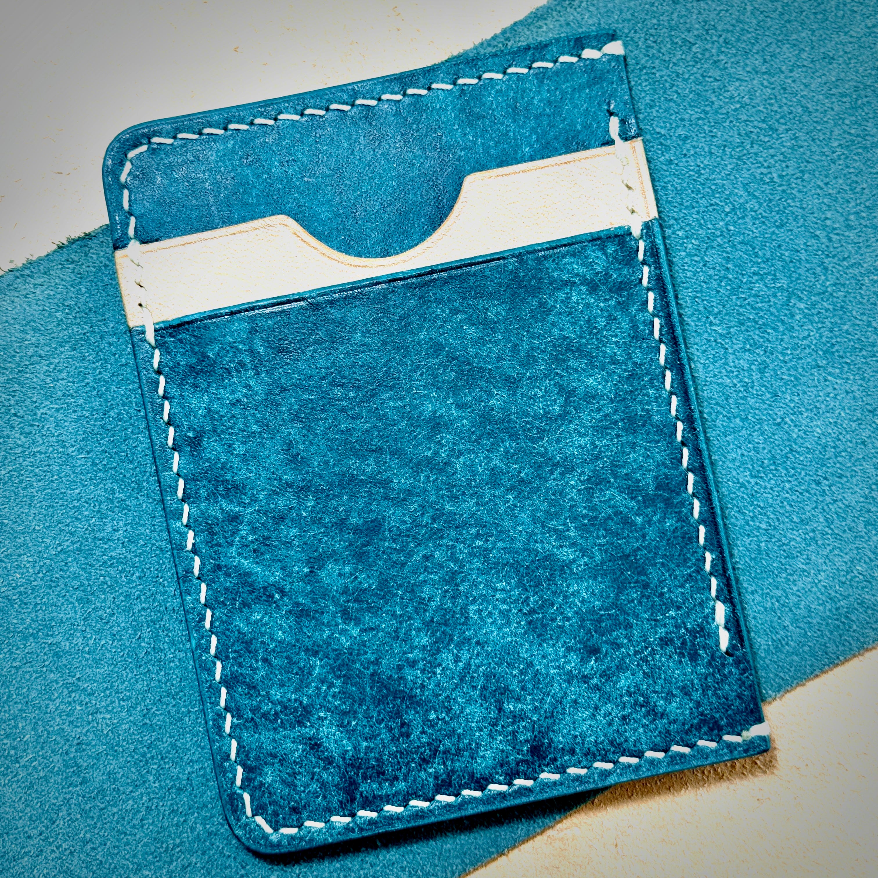 The Quatrain Cardholder is an intermediate-level pattern featuring four main card slots and two hidden pockets. It pairs perfectly with the tutorial video above, which provides a comprehensive walk-through. While edge allowance, trimming, bevelling, and finish work will enhance your final product, they are optional. This pattern works well with most lower-weight vegetable-tanned leather, with a recommended thickness of 2.5-3.5oz (1.2mm).