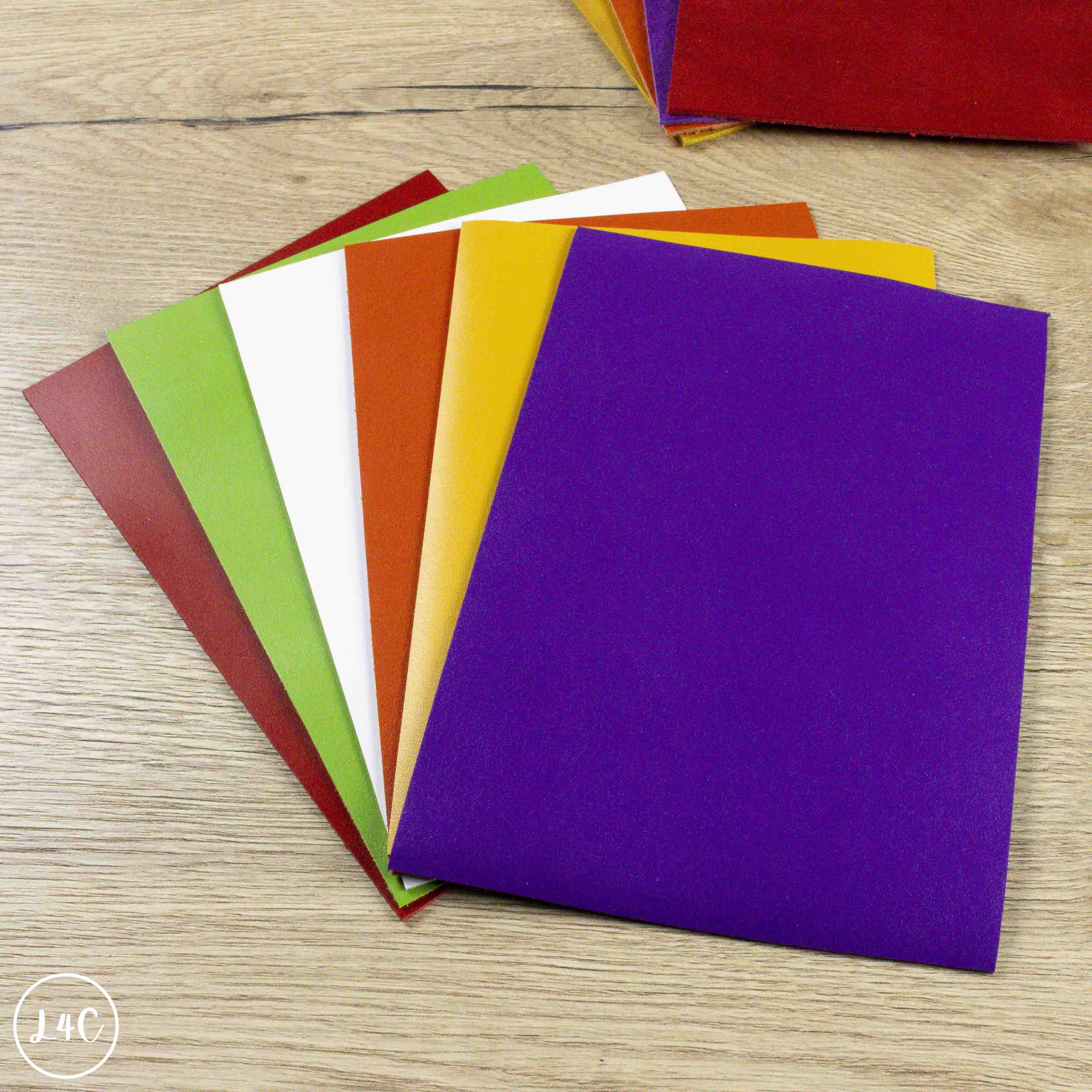 This wonderful Spring Crocus Leather Pack features six colours of Italian Softee leather: Ruby Red, Lime Green, White, Jaffa Orange, Daffodil and Royal Purple.