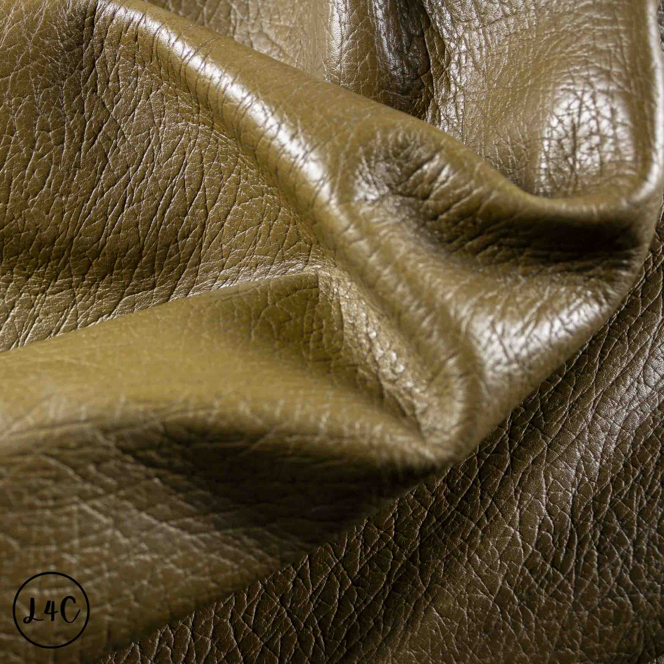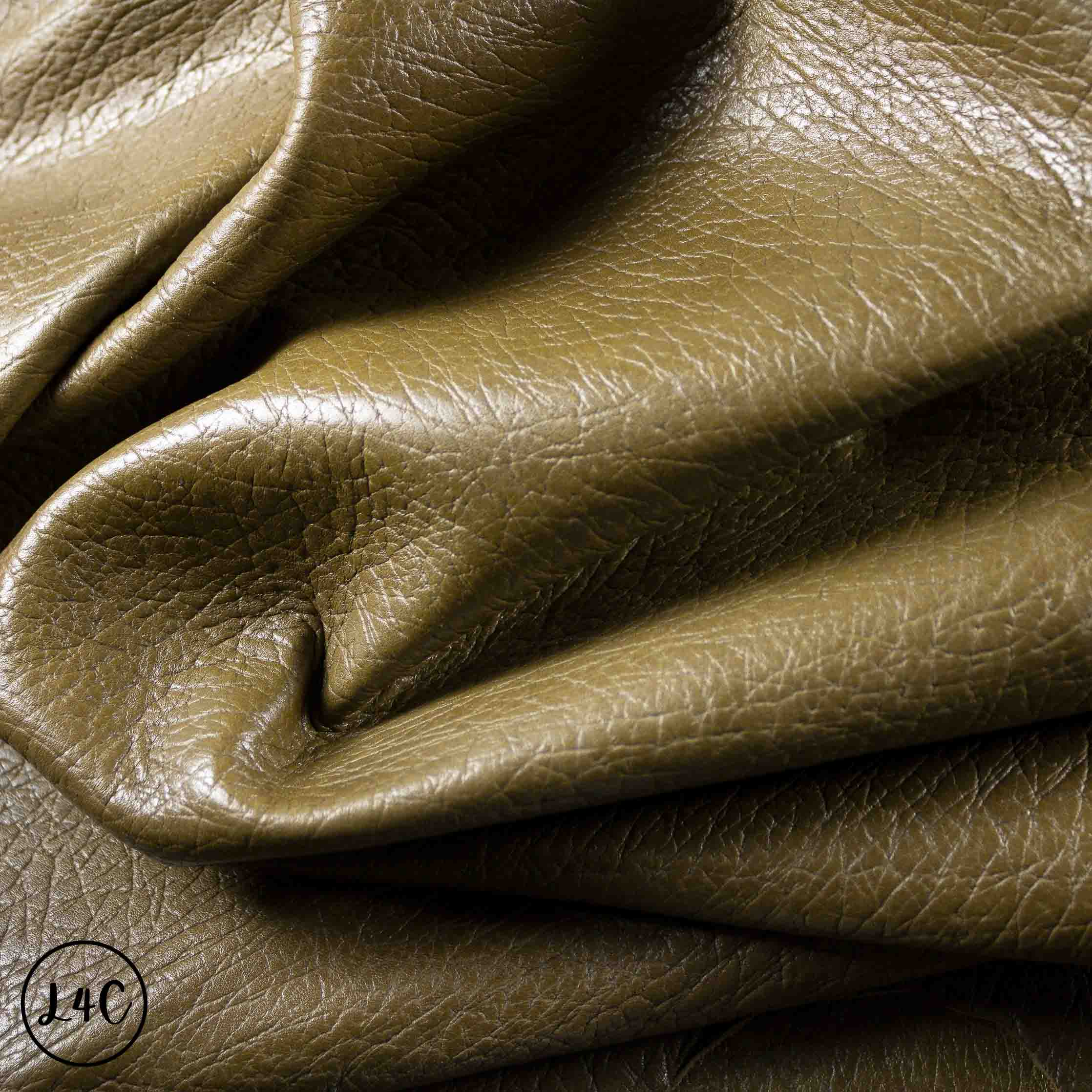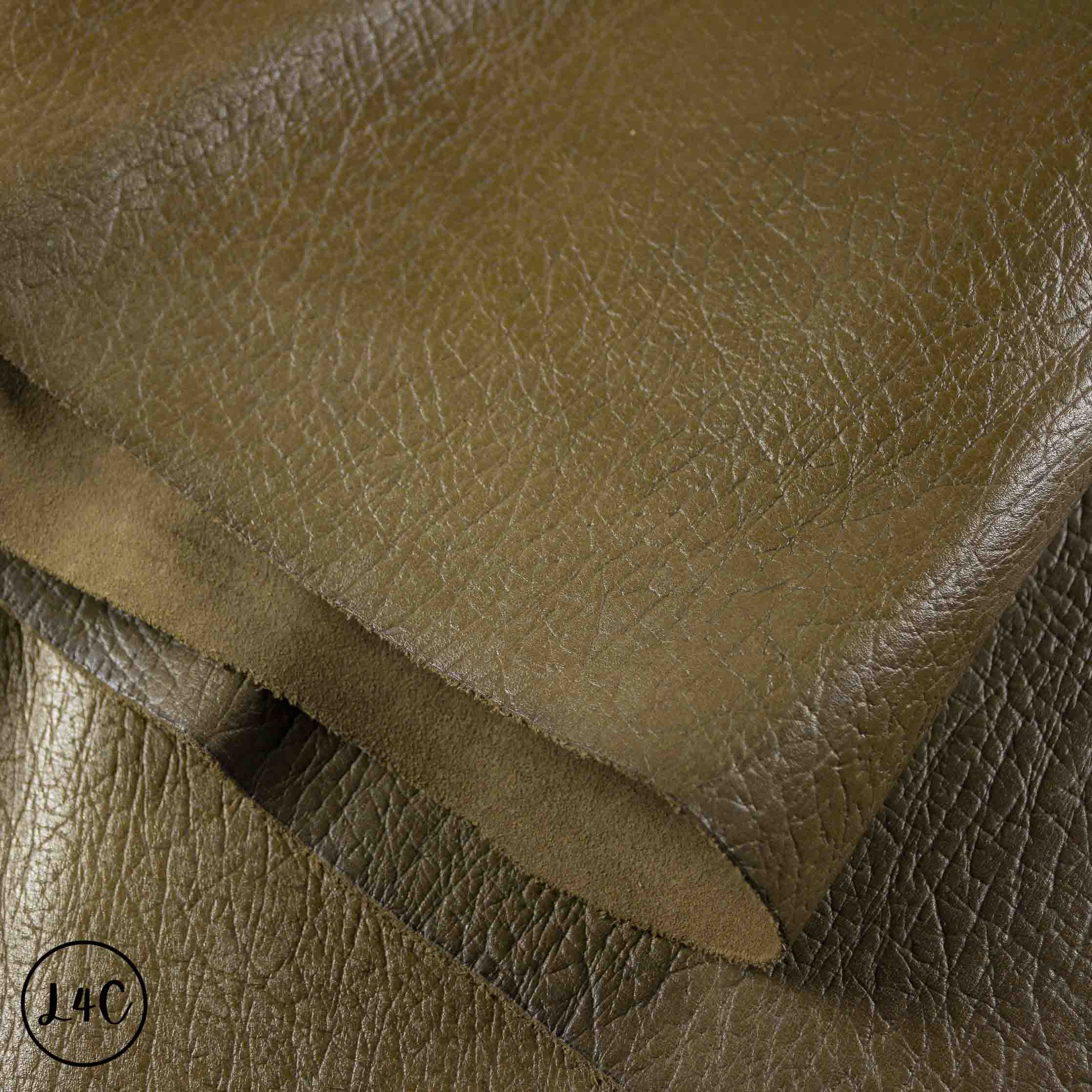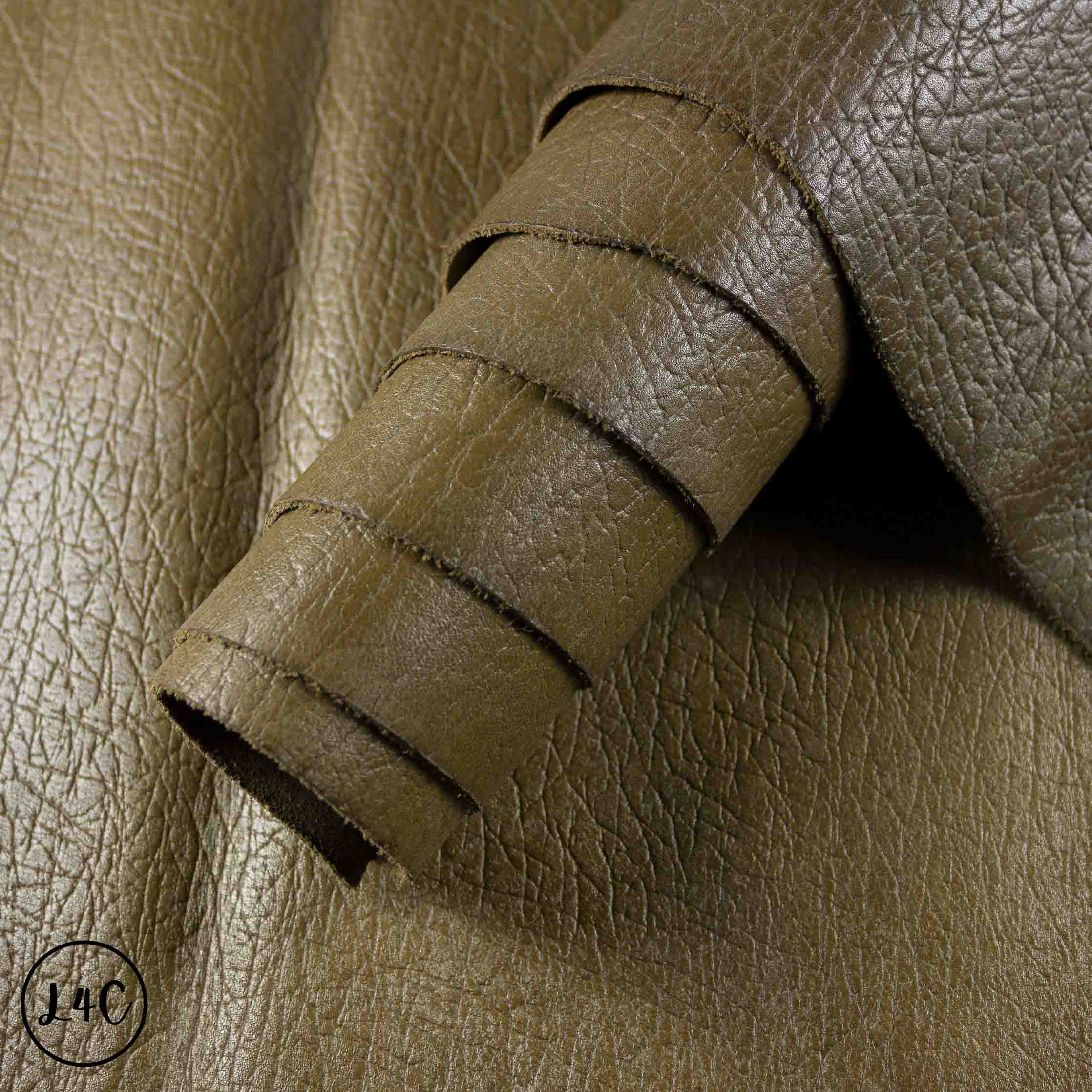 Olive Heavy Embossed Grain Leather Hide, 18.00 sq ft, 1.4 - 1.6 mm thick