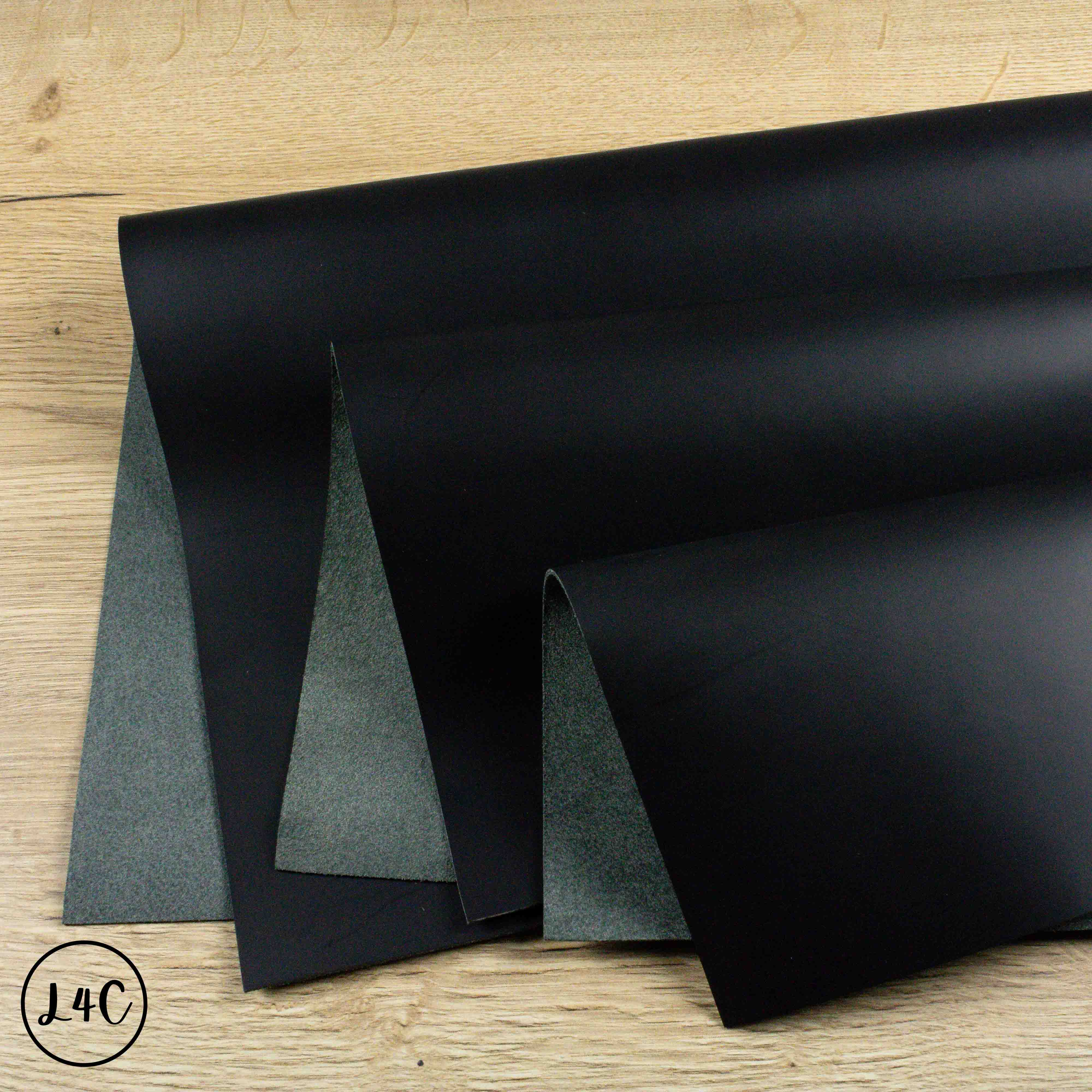Calf Leather Vegetable Tanned, Satin Black, A Sized Panels, 1.2 - 1.4 mm thick