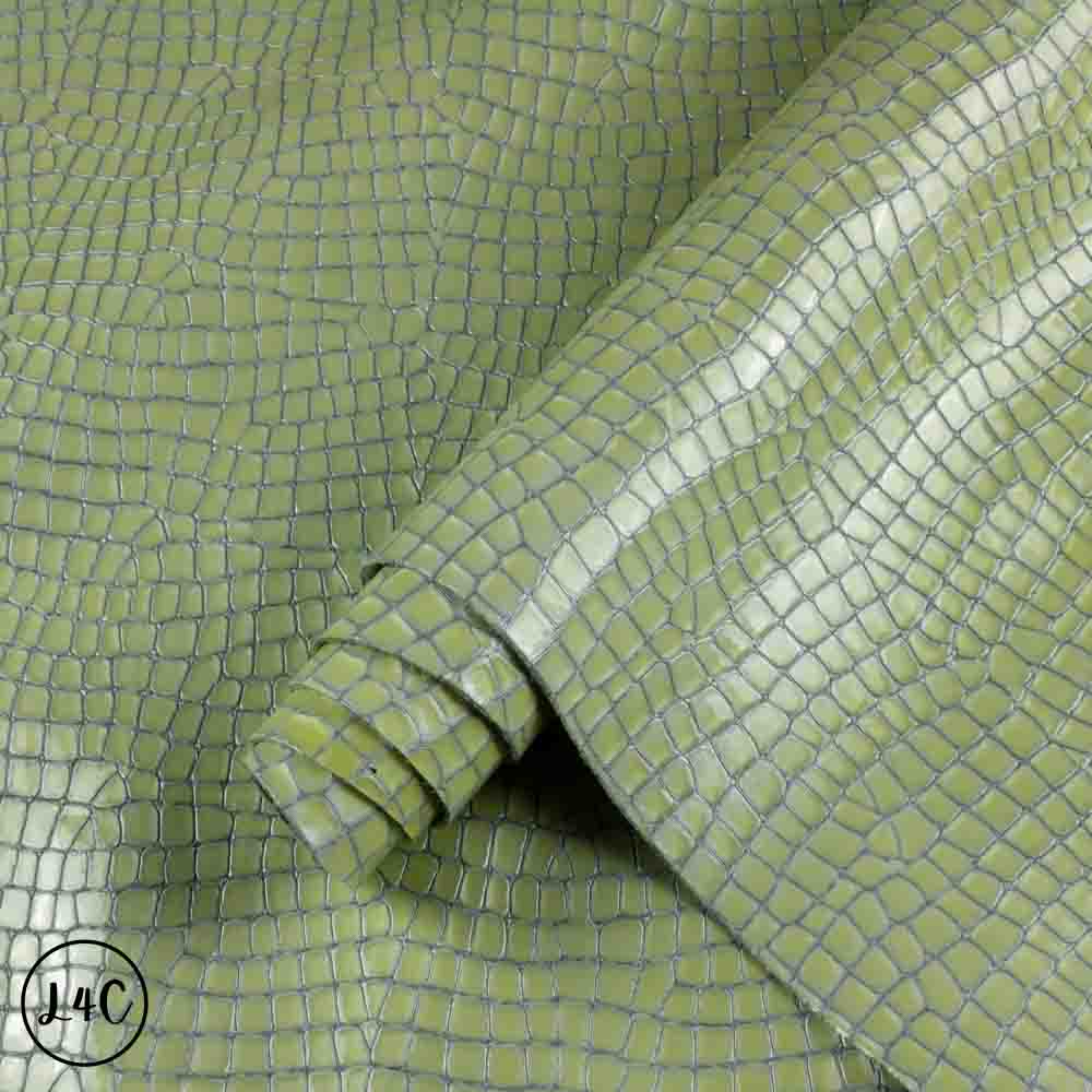 Mint Patent Croc Embossed Leather Hide, 1.0 - 1.2 mm, 10.00 sq ft
