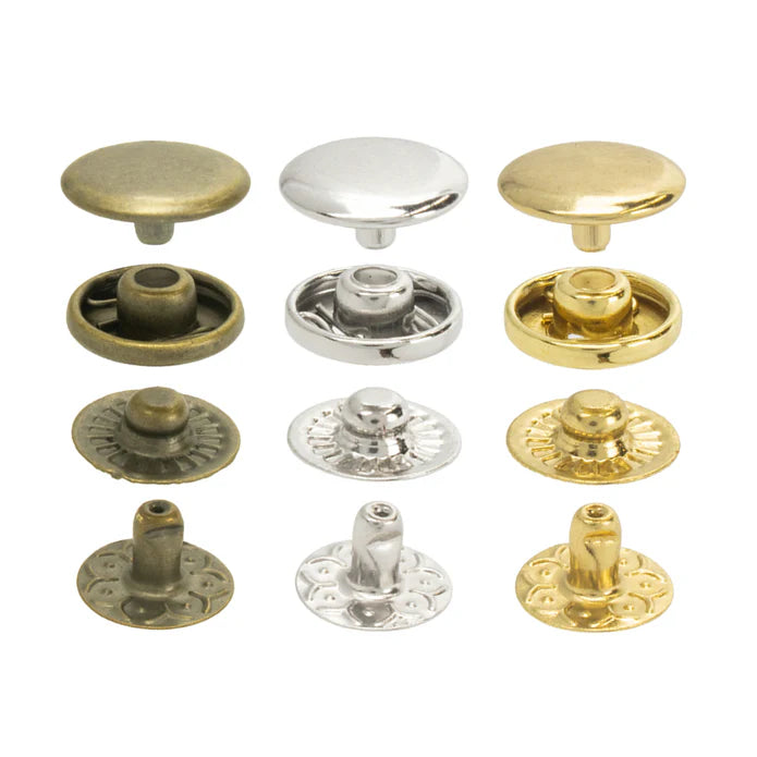 Single Cap Glove Snaps for Leather Crafting. These are easy to set, open and close. Great for small accessories like key cases, coin purses and billfolds.